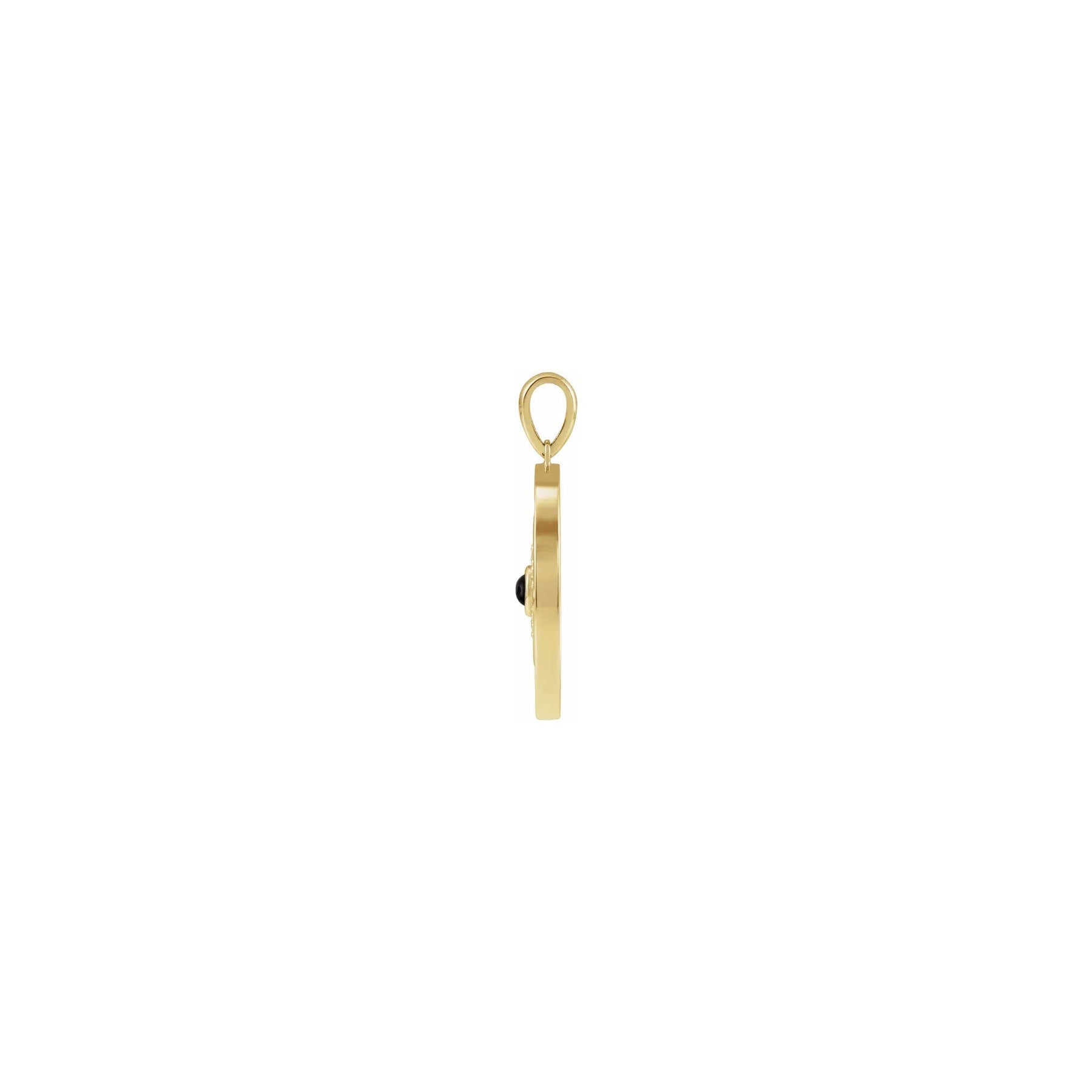 Black Onyx and Diamonds Evil Eye Round Pendant yellow (14K) side - Lucky Diamond - New York