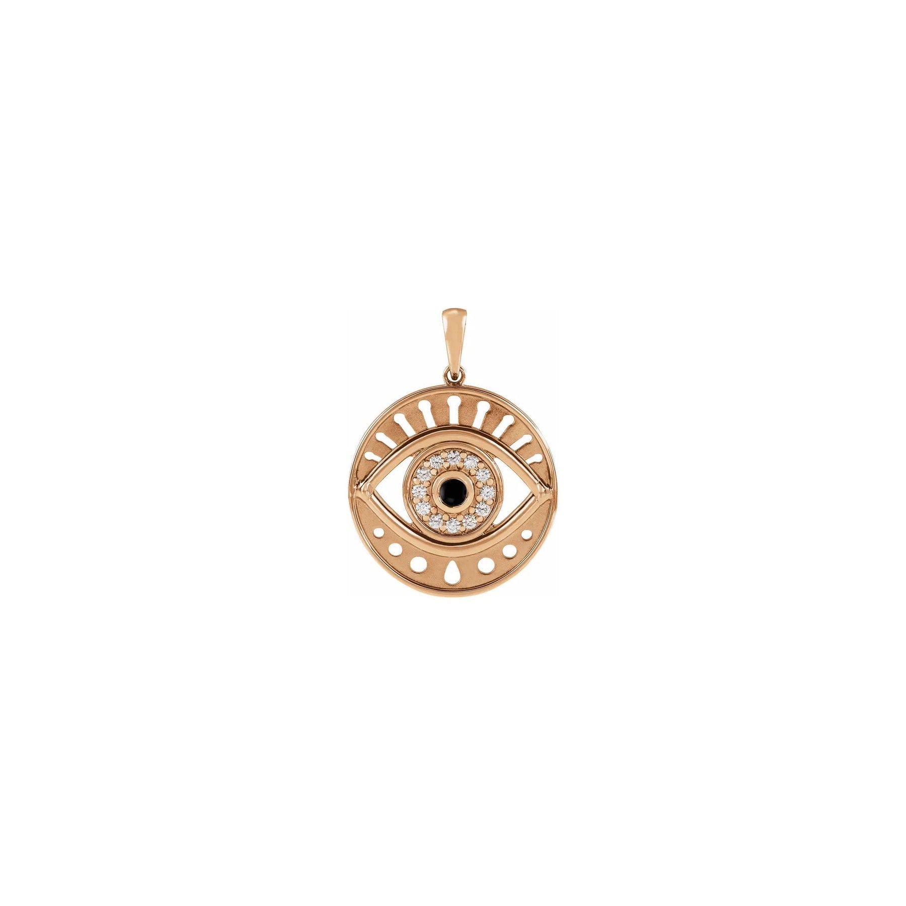 Black Onyx and Diamonds Evil Eye Round Pendant rose (14K) front - Lucky Diamond - New York