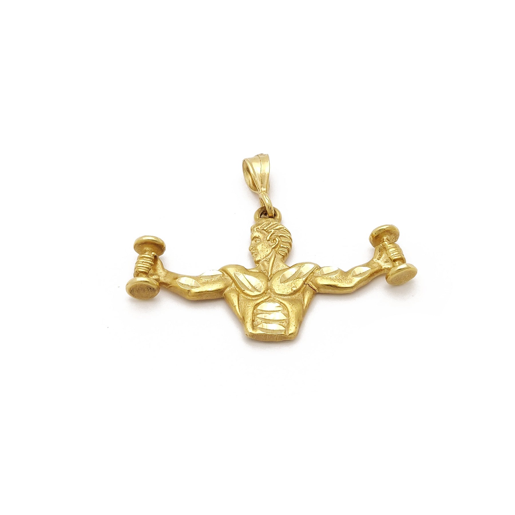 Dumbbell Weightlifting Pendant (14K) 14 Karat Yellow Gold, Gym, Fitness, Lucky Diamond New York
