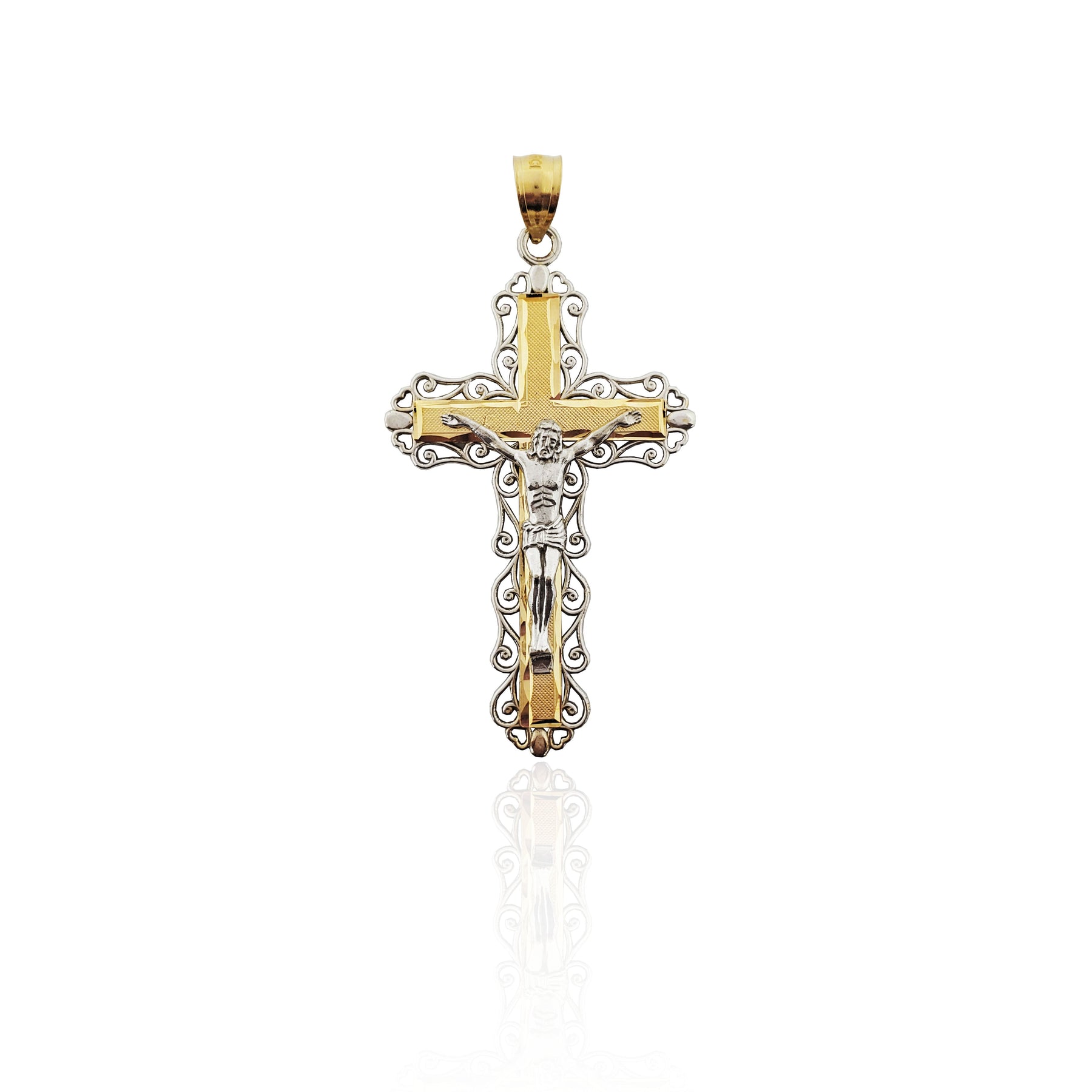 Colgante de cruz crucifijo de dos tonos (14K).