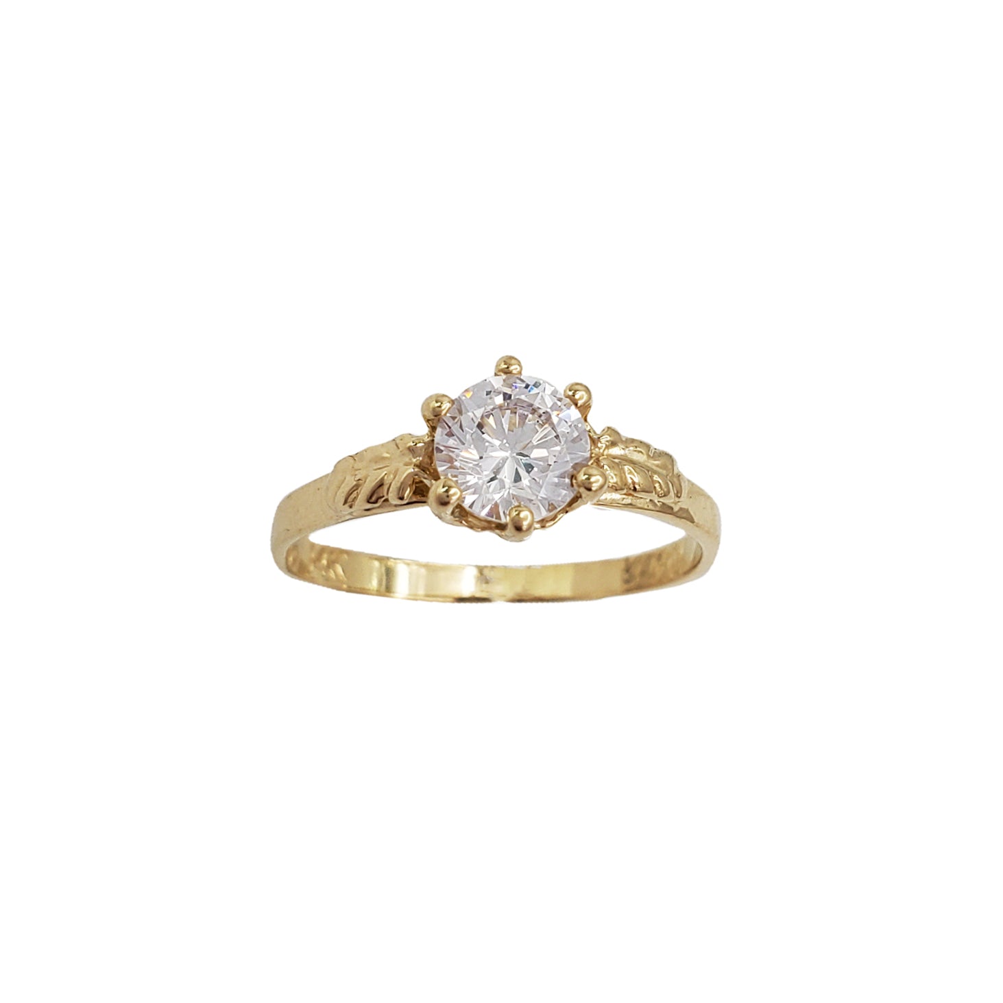 Anillo de bebé de 6 puntas con circonita y piedra de nacimiento (14 quilates)