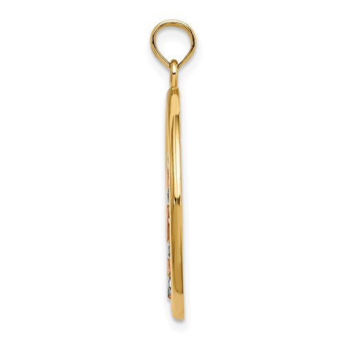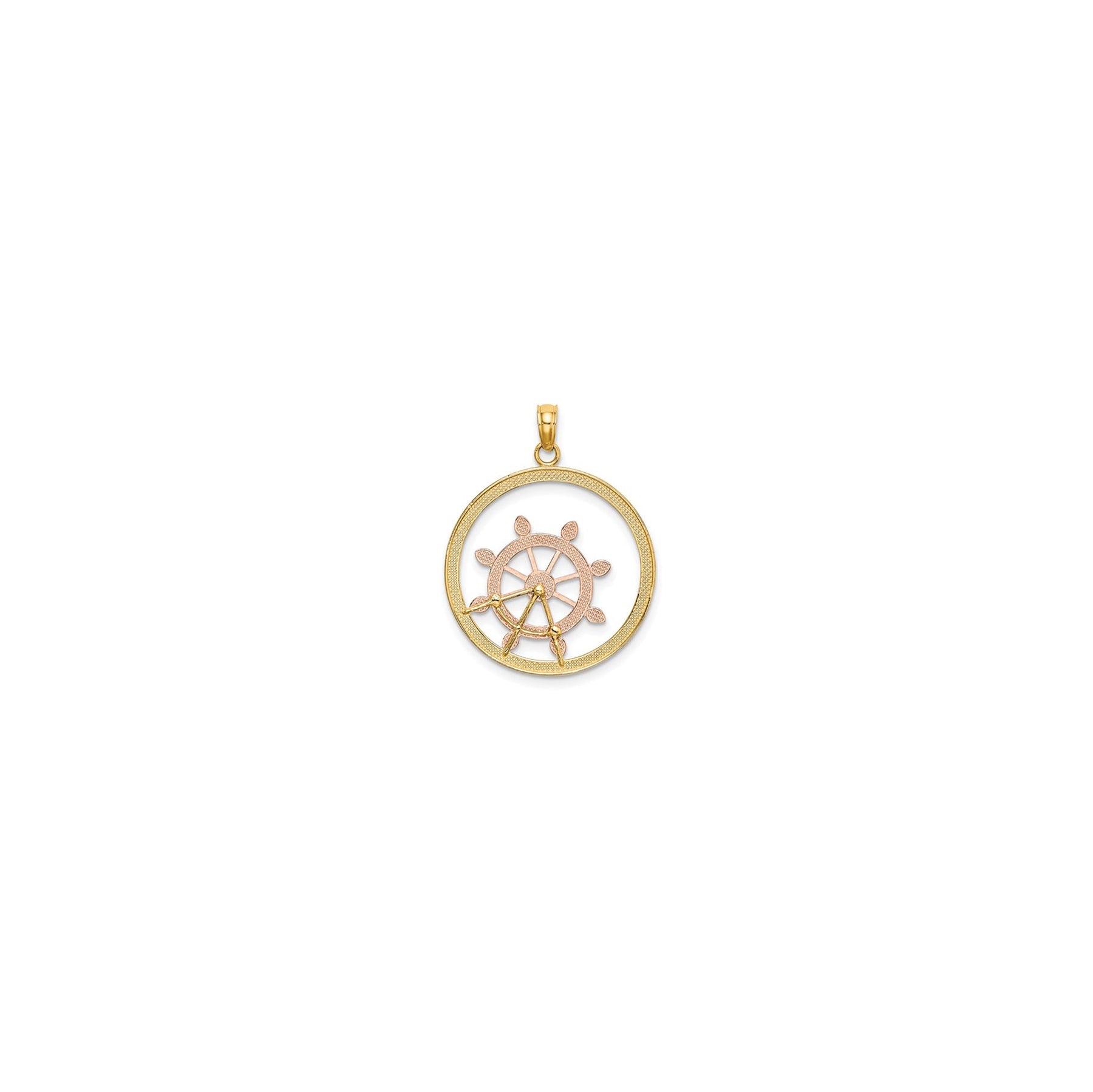 Colgante de rueda de barco con marco redondo tricolor (14 quilates)
