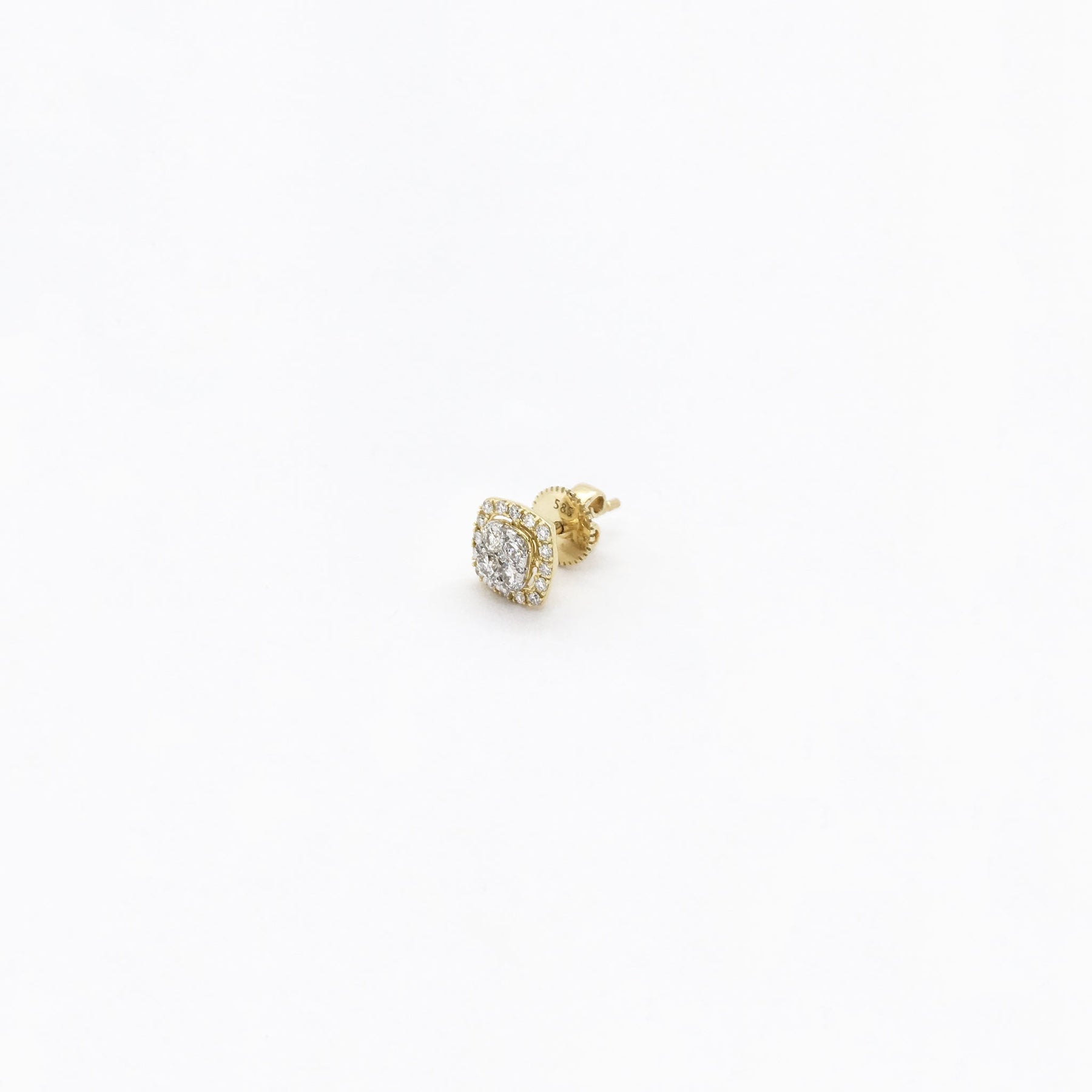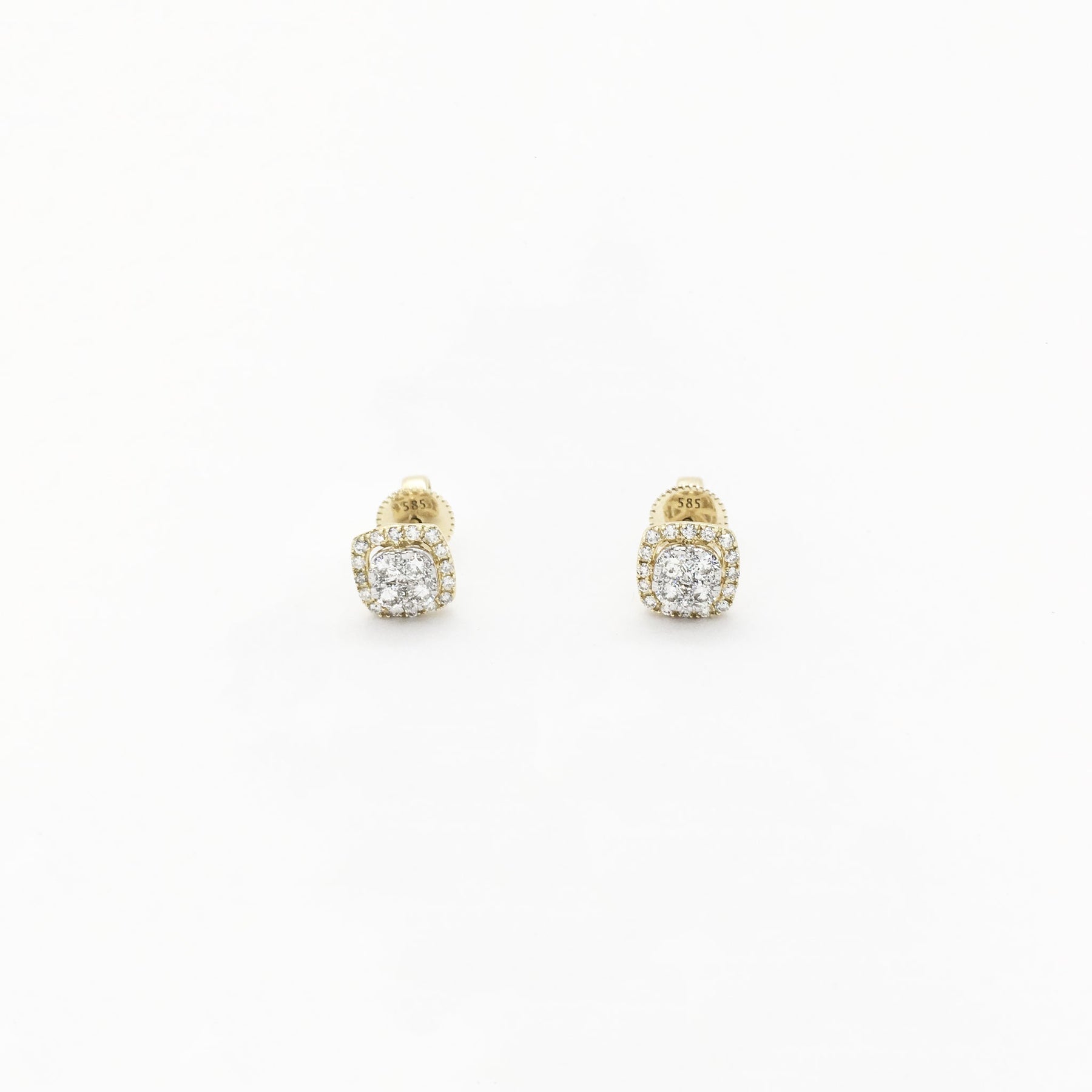 Diamond Round Square Halo Stud Earrings (14K) front - Lucky Diamond - New York