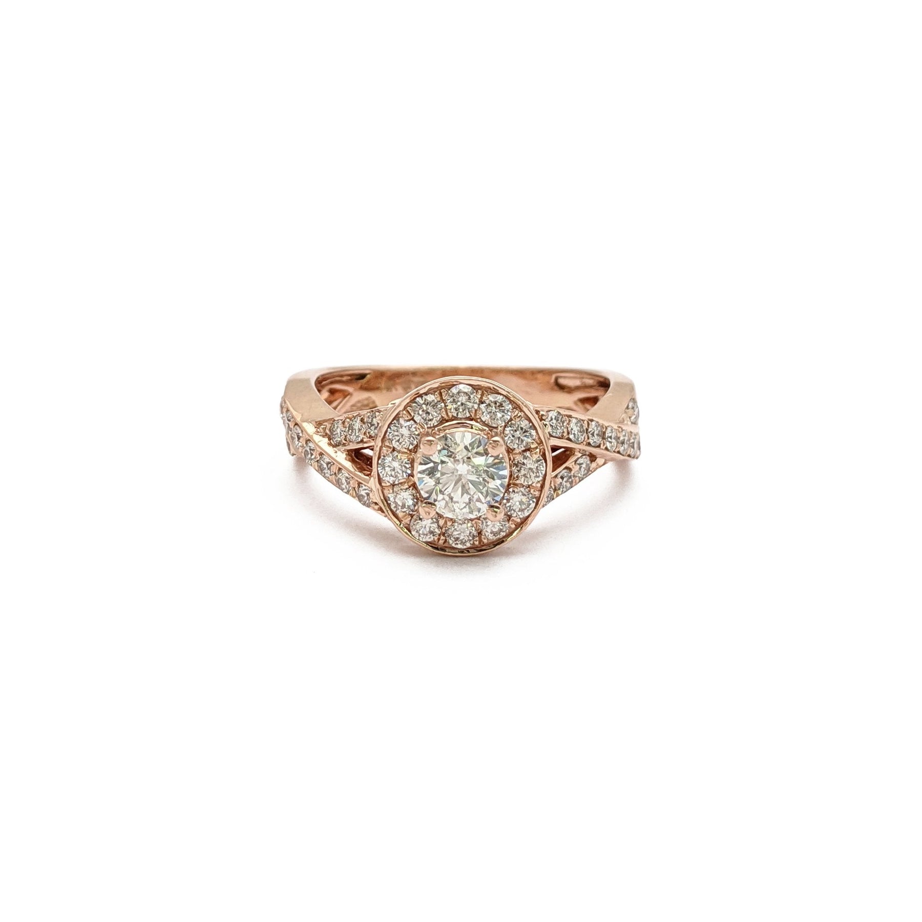 Entwined Round Cut Diamond Engagement Halo Ring (14K) front - Lucky Diamond - New York