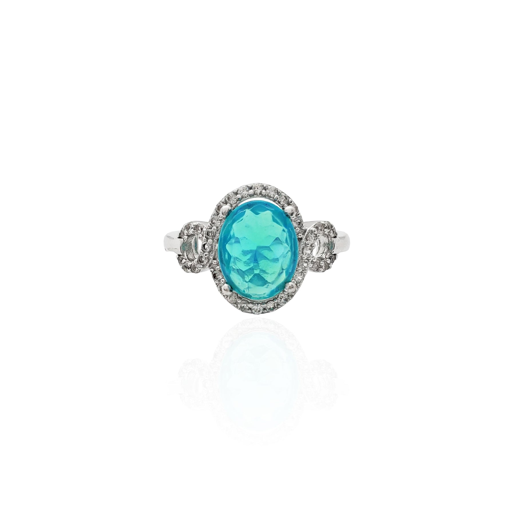 Oval Aquamarine Halo CZ Ring (Silver).