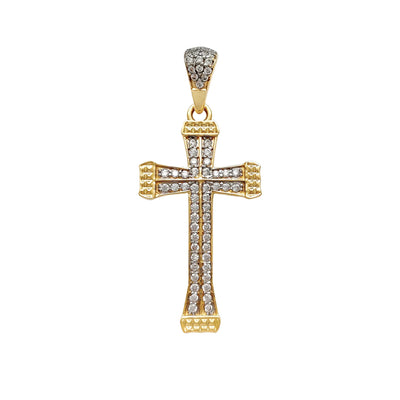 Iced-Out CZ Valved Cross Pendant (14K)
