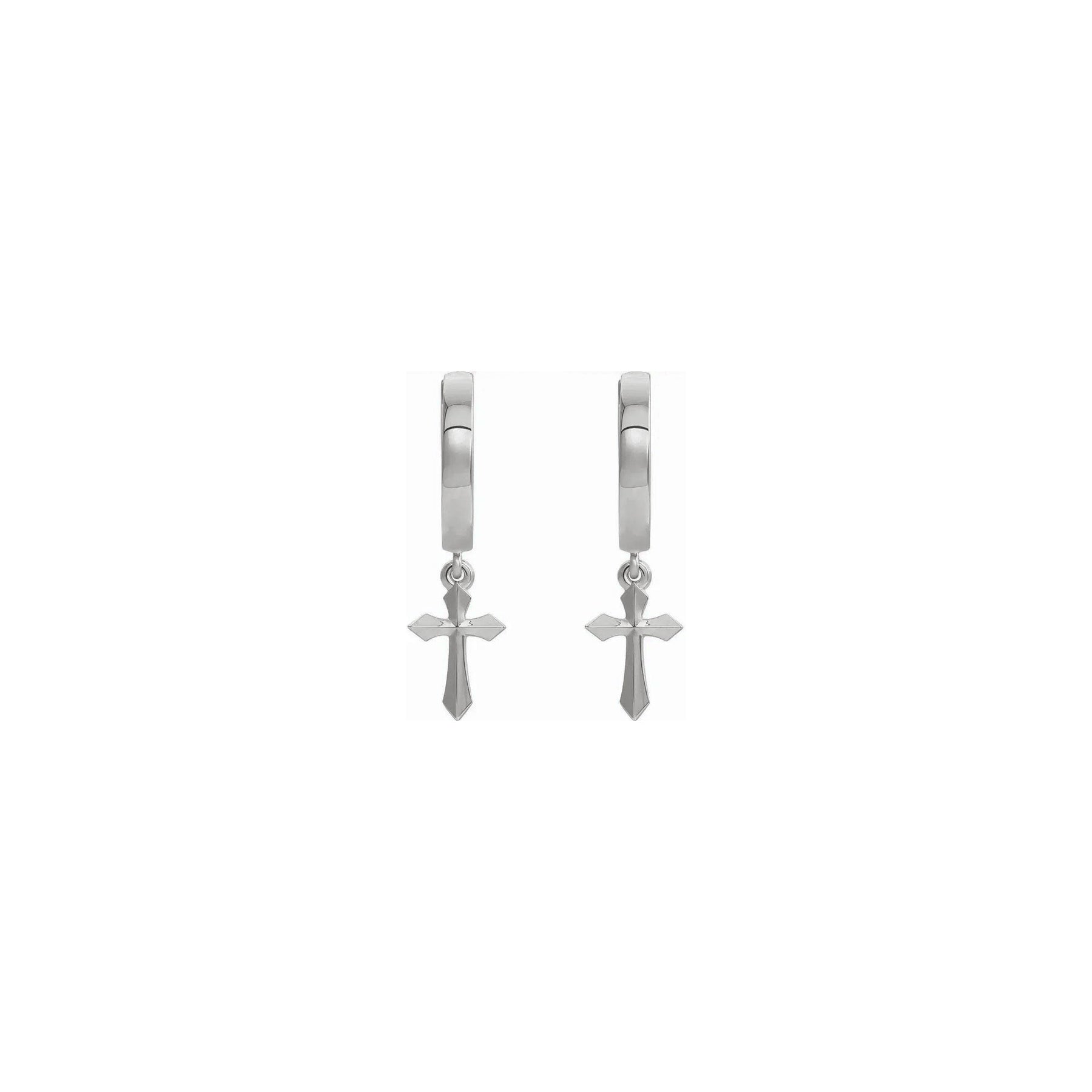 Pointy Cross Hanging Hoop Earrings (Silver) front - Lucky Diamond