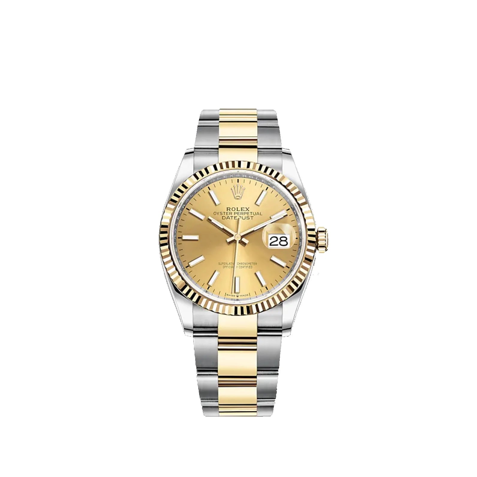 Rolex Datejust 36mm Two Tone Oyster Bracelet Fluted Bezel Champagne Dial