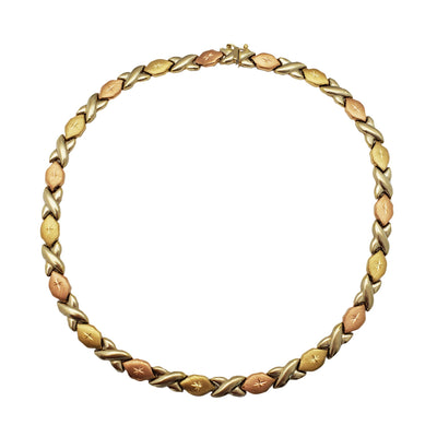 Tri-Tone Sand Finish "XO" Fancy Necklace (14K)