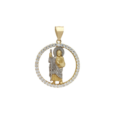 Stone-Set Halo Outline Saint Jude Medallion (14K)