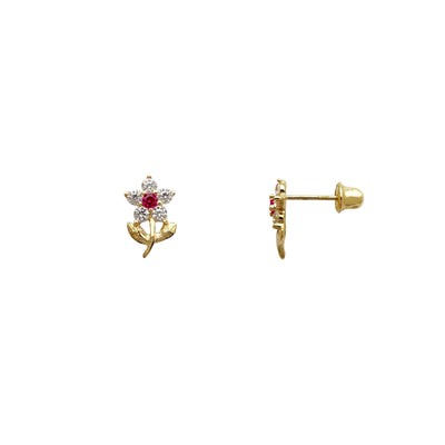 Stone-Set Flower Stud Earrings (14K)