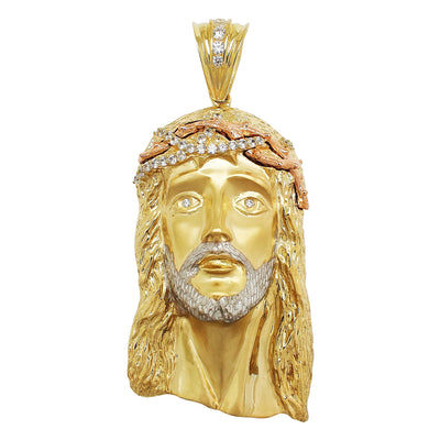 Tri-Color Jesus Head Pendant (14K)