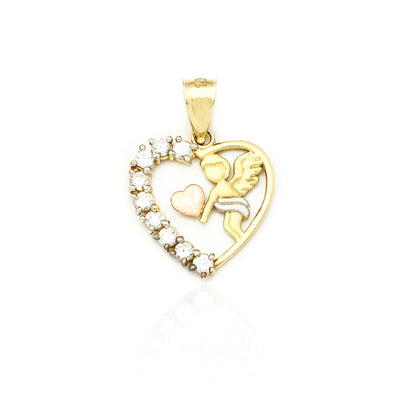 Tri-Color Love Angel Heart CZ Pendant (14K)