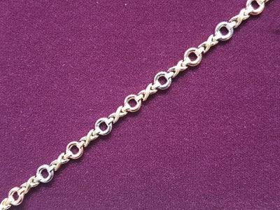A fancy ladies bracelet made by intertwining gold X's and O's.