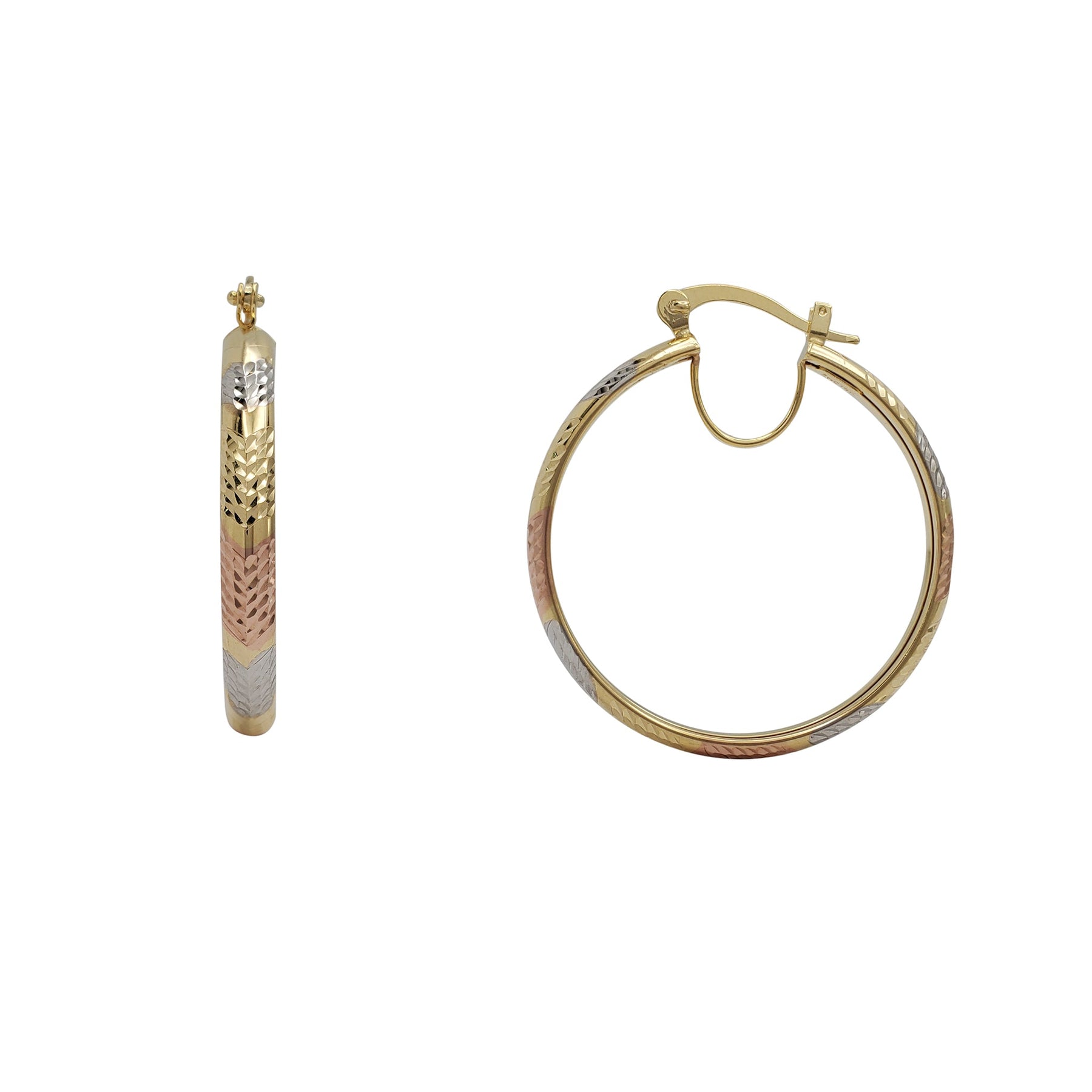 Tricolor Diamond-Cut Bangle-Style Hoop Earrings (14K)