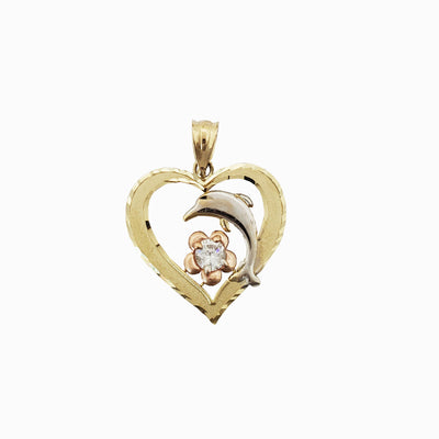 Tricolor Dolphin Flower Heart Pendant