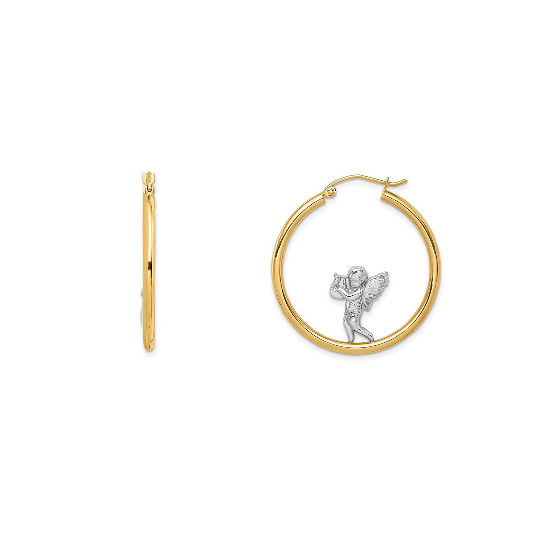 Two-Tone Baby Angel Hoop Earrings (14K)