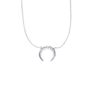 Upside Down Crescent Moon Necklace (Silver) - Lucky Diamond