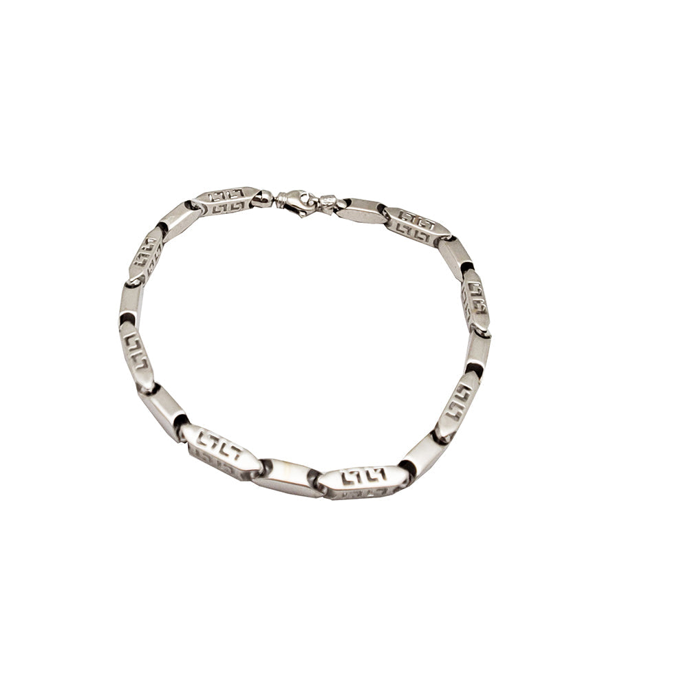 White Gold Imprinted Bullet Link Bracelet (14K)